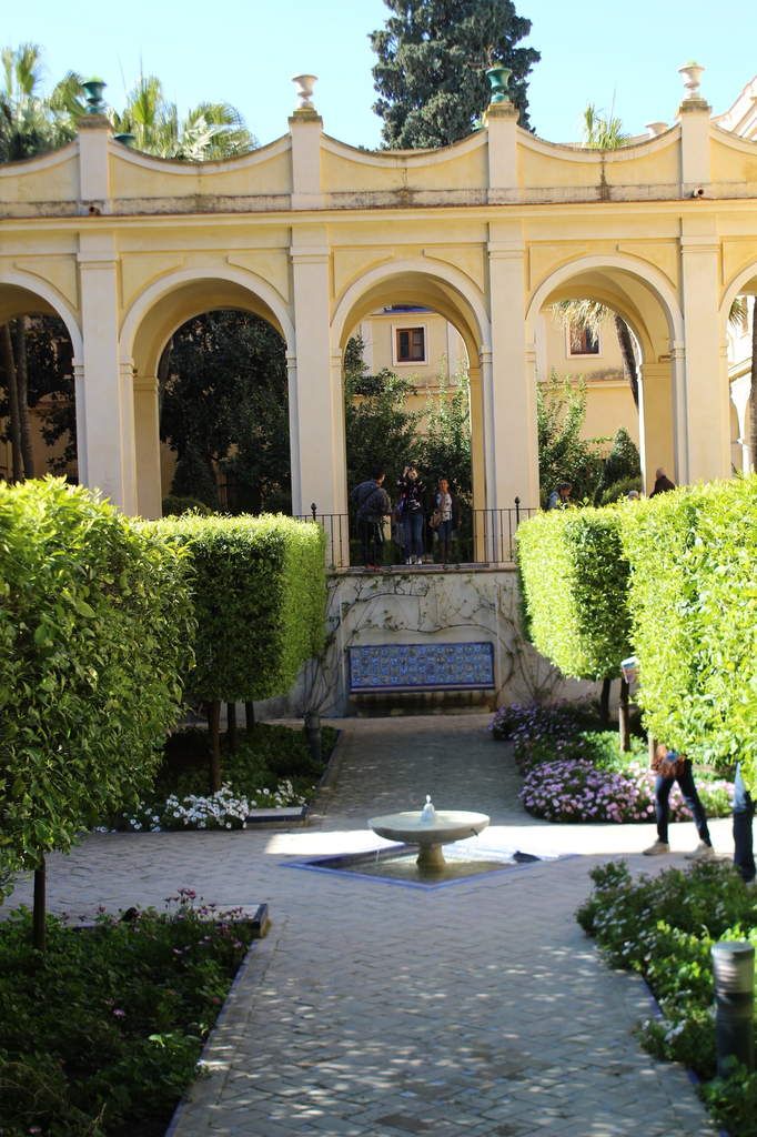 Il est d'architecture mudéjar, ce qui est, disons, une architecture à forte influence musulman (mudéjar sont des musulmans qui se sont convertis au christianisme au XIe siècle). L'alcazar, c'est aussi des cours qui ont toutes un style différent, 2 palais aux salles vides (sauf certaines, qui servent d'exposition) et d'énormes jardins qui ont servi de décor pour la série Fantastique Trône de Fer.