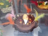 Mona de Pascua 1) avec l'oeuf au chocolat, 2) bourrative, hors traditionnelle et/ou commerciale, 3) Bunyols