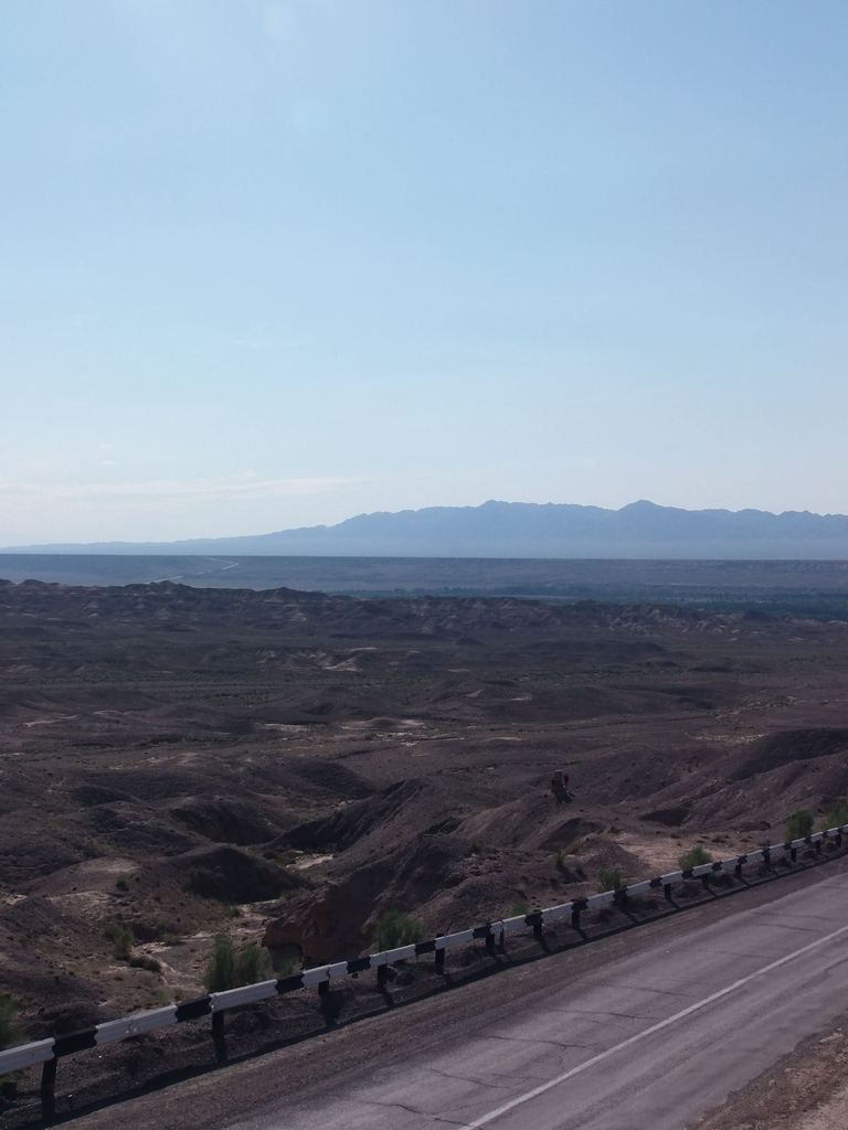 Je suis encore surprise (vraiment dépaysée, c'est le cas de le dire), par les kilomètres de routes où on ne rencontre rien. Juste une ligne droite sans arbres, entre des terres arides où miroitent des milliers de débris de verres au bord de la chaussée. Les Kazakhs jètent sans conscience leur bouteille de vodka par la fenêtre du véhicule, si, si.